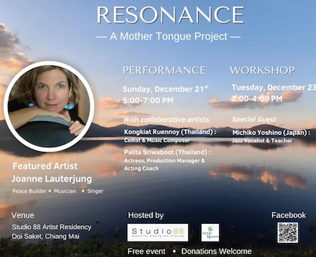 タイに住んでいるアメリカ人の友人のワークショップに、スペシャルゲストとして参加するためです。https://studio88artistresidency.com/category/news/community