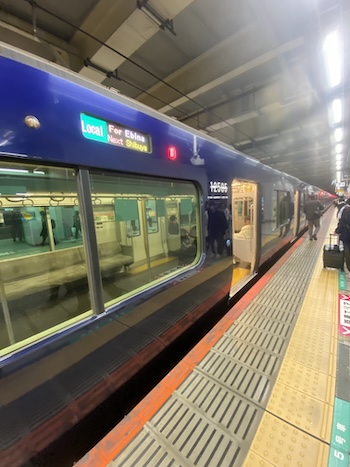 ….薄いグリーや、イエロー、赤だけでなく、こんな色の電車も普通に走っているのですね!